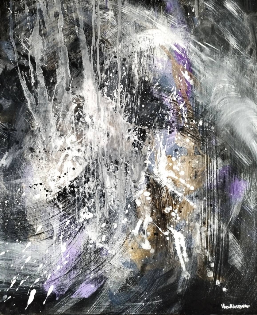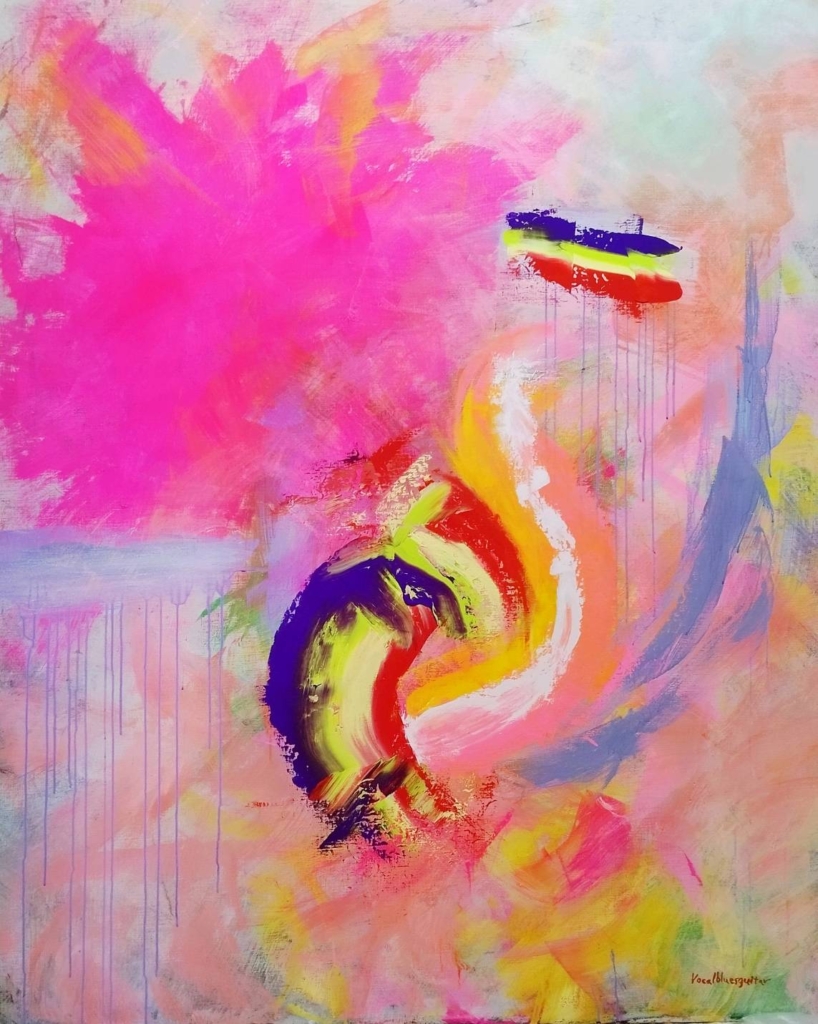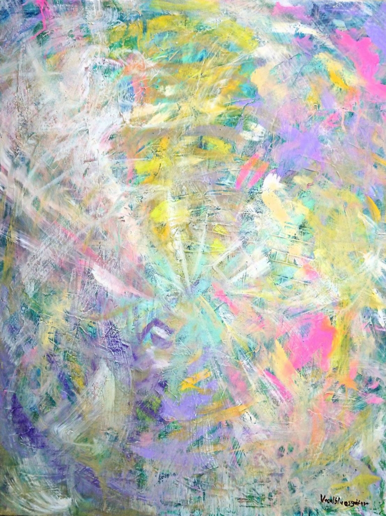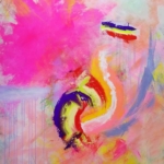 原画の他、ポストカードの種類も増やし、お手頃価格の複製原稿やトートバッグ、Tシャツも販売します。どなたでもお手軽にアートを体感出来るアットホームで楽しい展示にしたいと思います。私自身の事ですが、介護の最中で家族の在り方について色々考えさせられました。命について考え、そして大変な状況の中で、それでもポジティブな面を諦めないモチベーションを表現出来ればと願いました。そしてこれまで通り、勿論初めての皆様にも抽象画の面白さ、楽しさを感じ取っていただけたら幸いです。